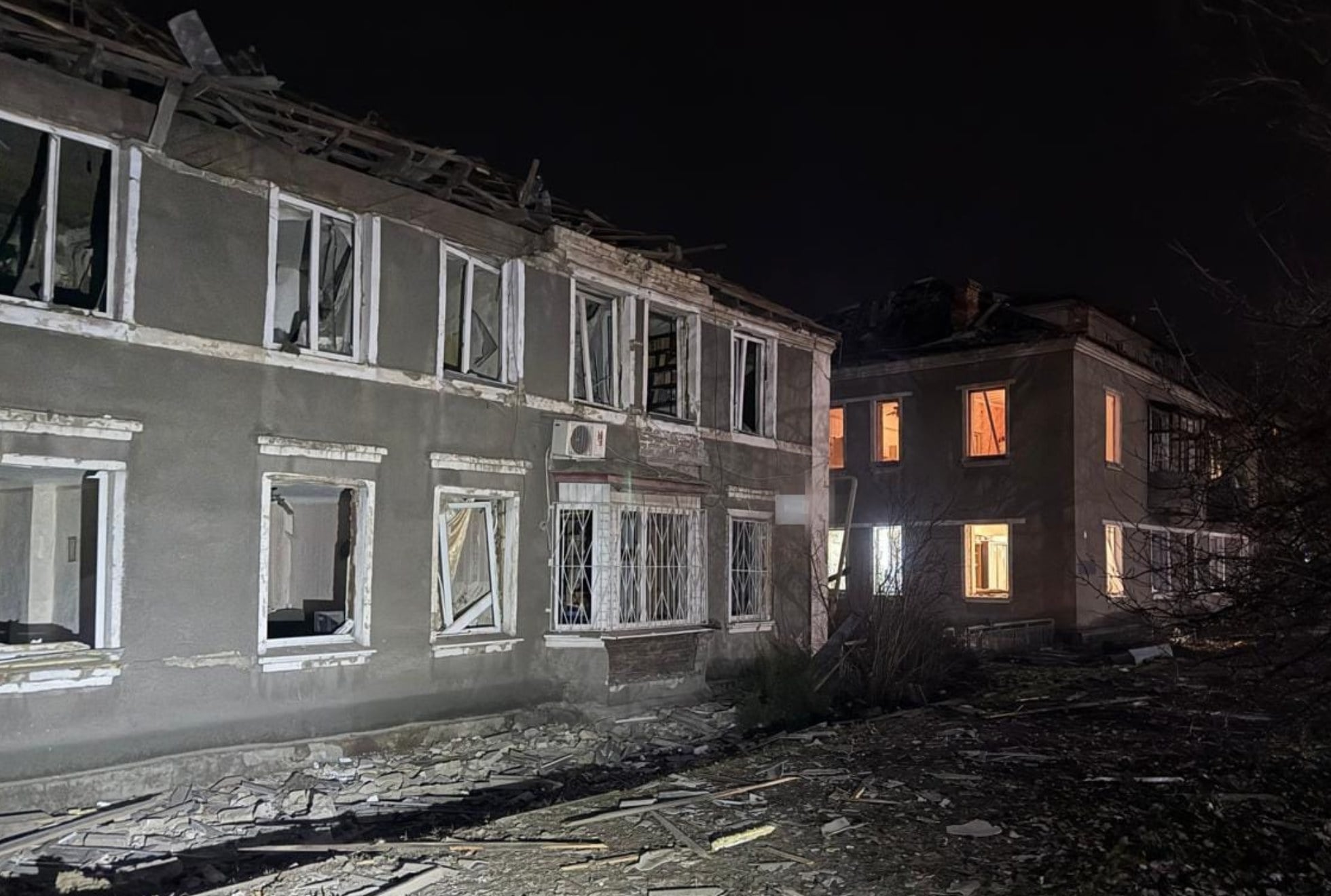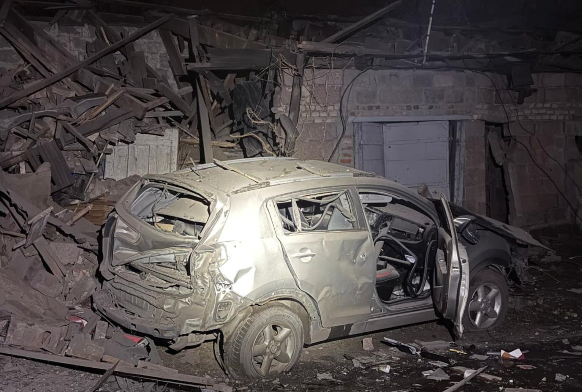 Emergency crews said the attack shook the neighborhood, blowing out doors and windows in seven multi-story buildings and damaging cars parked nearby. A fire tore through part of the energy site before firefighters, working under a renewed air-raid alarm, brought it under control.