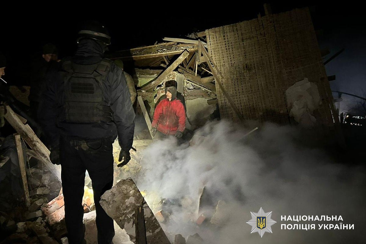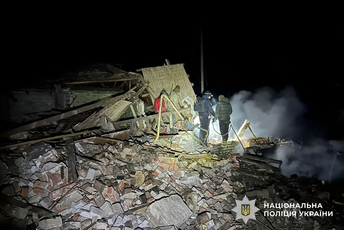 Police said Russian forces struck the settlement of Cherkaske with two Geran-2 drones, killing four people and injuring five civilians, including three girls ages 12, 14 and 16. Two house were destroyed and two vehicles were damaged. A separate FPV drone strike injured a civilian in Druzhkivka, while rocket fire damaged another house.