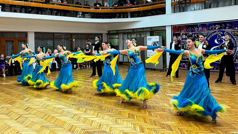 Above: In Mykolaiv, the national ballroom dance ensemble “Gratsia” performed publicly for the first time since the war began on March 1. (Suspilne)