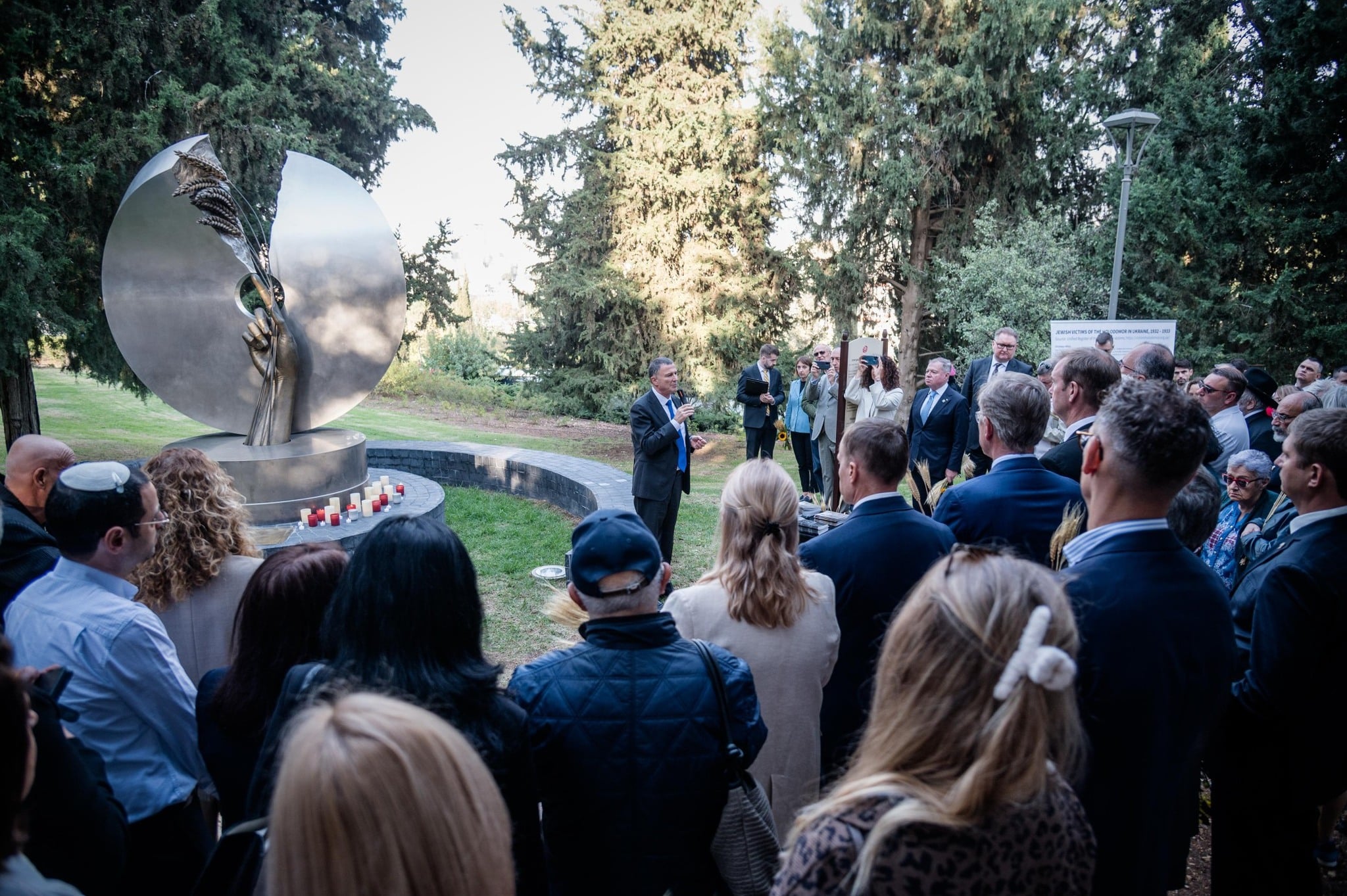 The ceremony was part of a commemoration of the Holodomor victims and included members of the Ukrainian delegation that was led by Deputy Prime Minister for European and Euro-Atlantic Integration Taras Kachka, representatives of the Jerusalem Municipality, the Israeli Ministry of Foreign Affairs, the Knesset, the diplomatic corps, and the Ukrainian community.