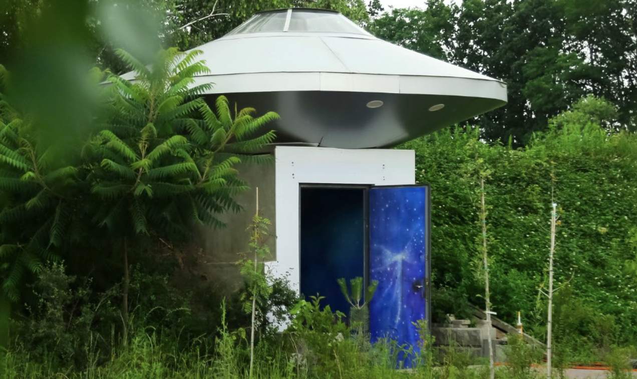 A standout feature is the entrance, designed in the shape of a “flying saucer,” which has led to the shelter being nicknamed the “cosmic shelter.”