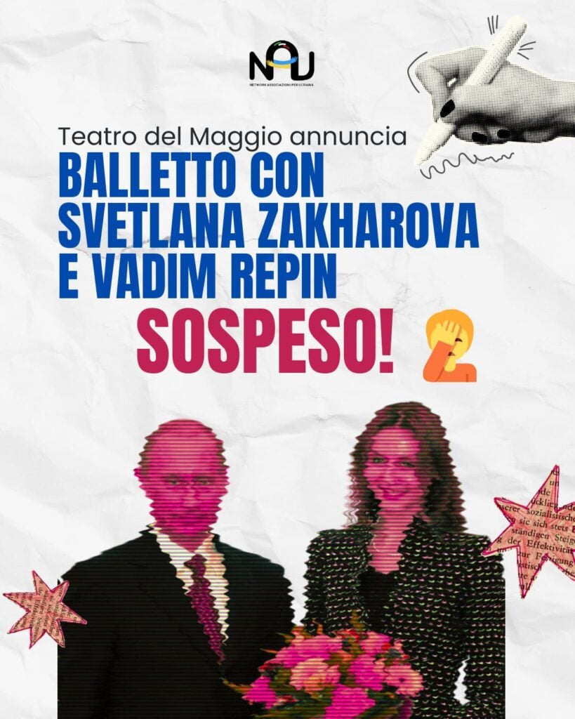 Балет “Pas de deux for toes and fingers” за участі російських виконавців Світлани Захарової та Вадима Рєпіна мав відбутися 20–21 січня 2026 року в театрі Maggio Musicale Fiorentino. 8 січня 2026 року театр повідомив, що покази не відбудуться, пославшись на “тривалі міжнародні напруження, які створюють умови, що можуть поставити під загрозу успішне проведення вистави”.