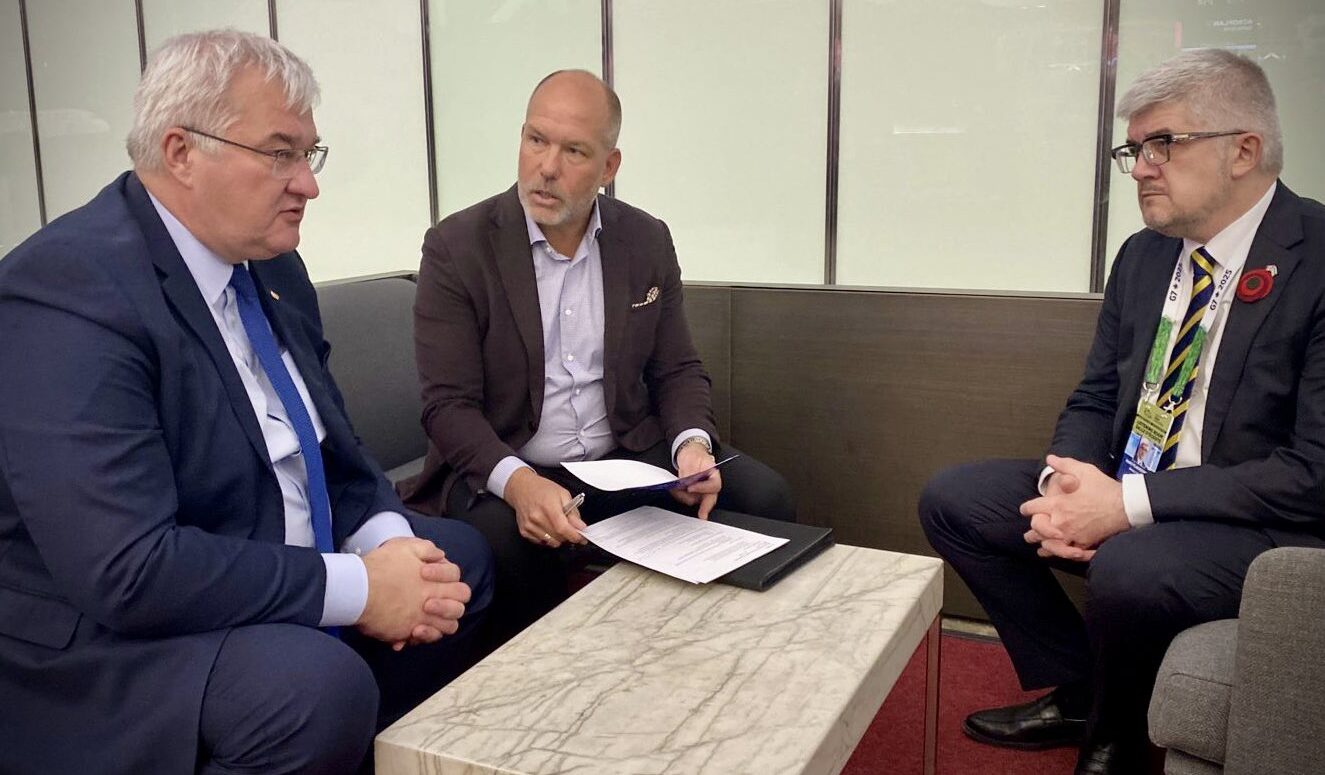 Президент Світового Конґресу Українців (СКУ) Павло Ґрод провів зустріч з міністром закордонних справ України Андрієм Сибігою та послом України в Канаді Андрієм Плахотнюком у Торонто 12 листопада.