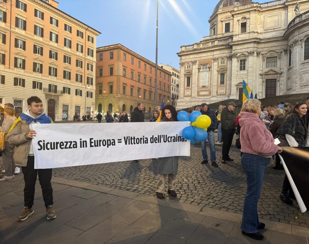 Hundreds of Ukrainians, Italian friends of Ukraine, and diplomatic representatives and politicians marched through the city center, demonstrating solidarity with Ukraine’s fight for independence.