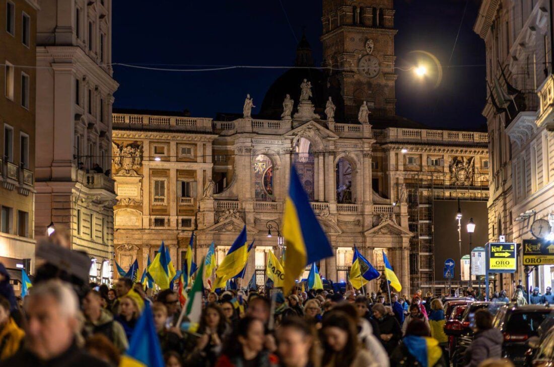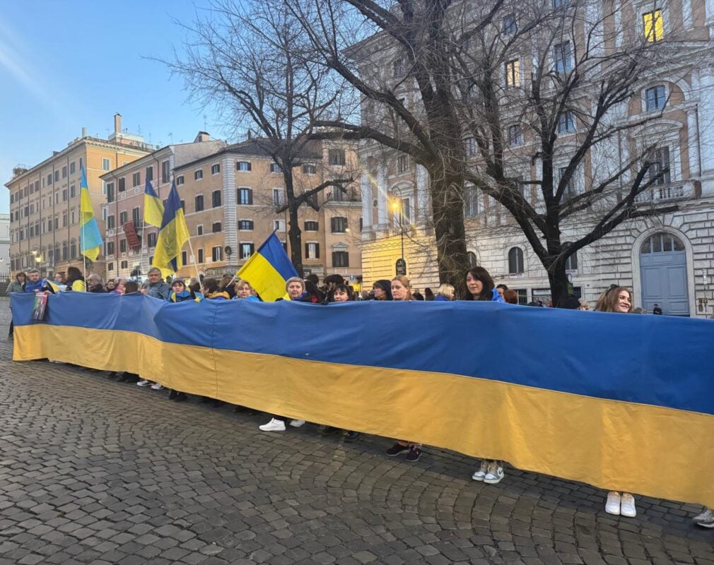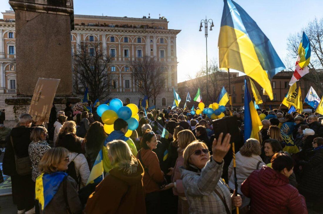 On Feb. 23, another large rally and march in support of Ukraine took place in the Italian capital, with the city adorned in blue-and-yellow flags, reported the Embassy of Ukraine in Italy.